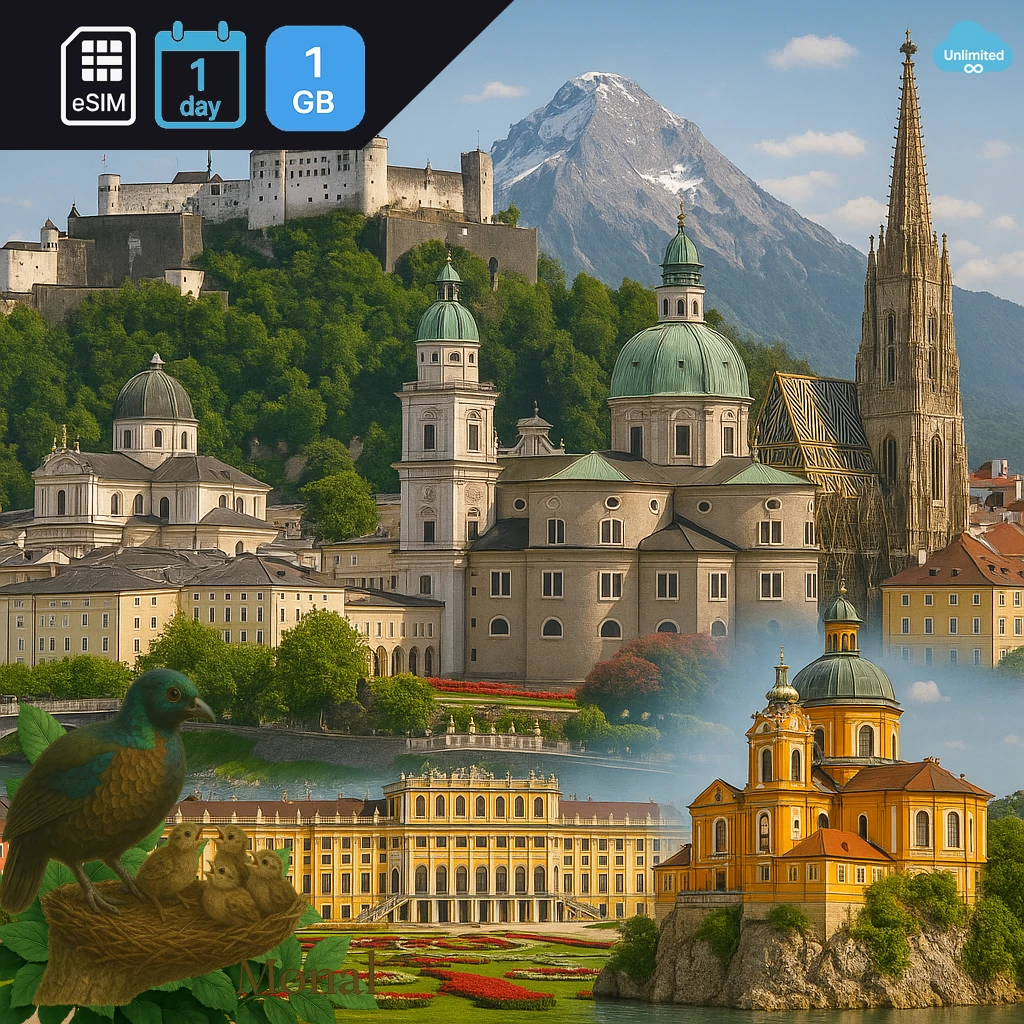 Austria 1GB/Day FUP1Mbps Get 1 GB of high-speed data for your travel needs. Perfect for travel in Austria. Valid for 1 day once activated. You have 180 days to activate after purchase. Enjoy 3G/4G/5G network speeds for fast and reliable connectivity. Connects via 3 network for reliable coverage. Supports top-up options to extend your data when needed. Instant delivery via email - no physical SIM required. Simply scan the QR code to get connected.