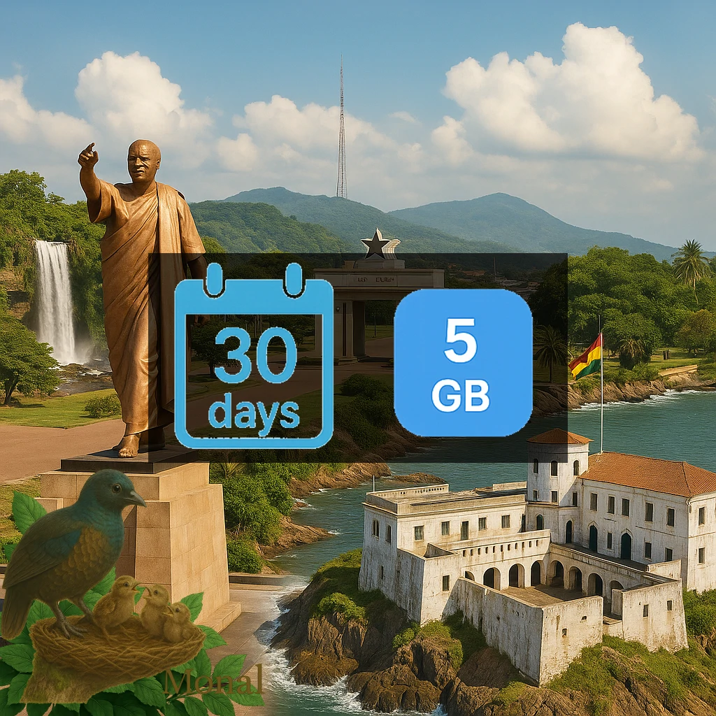 Ghana 5GB 30Days Get 5 GB of high-speed data for your travel needs. Perfect for travel in Ghana. Valid for 30 days once activated. You have 180 days to activate after purchase. Enjoy 3G/4G network speeds for fast and reliable connectivity. Connects via AirtelTigo network for reliable coverage. Supports top-up options to extend your data when needed. Instant delivery via email - no physical SIM required. Simply scan the QR code to get connected.